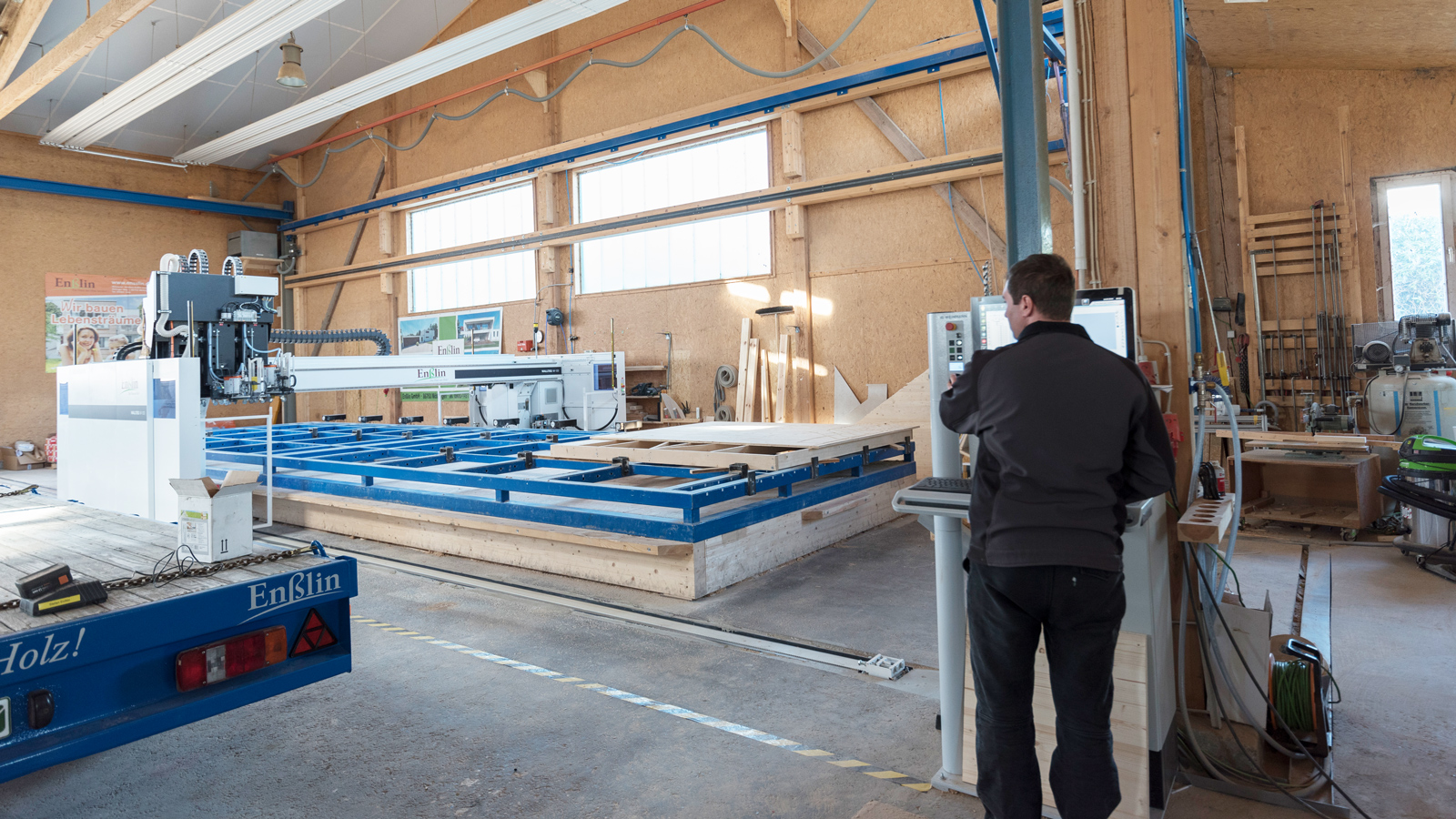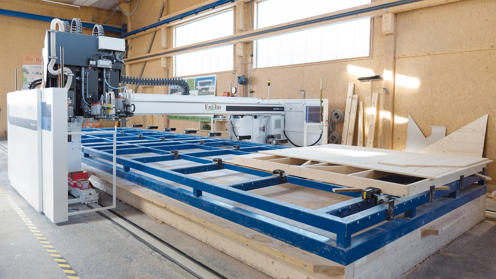 In Zeiten knappen Personals fiel es der Zimmerei Holzbau Enßlin im schwäbischen Möttingen immer schwerer, den steigenden Auftragsbestand abzuarbeiten. Die Lösung brachte eine automatisierte Elementfertigung, die speziell auf die Bedürfnisse kleiner Unternehmen zugeschnitten ist.
