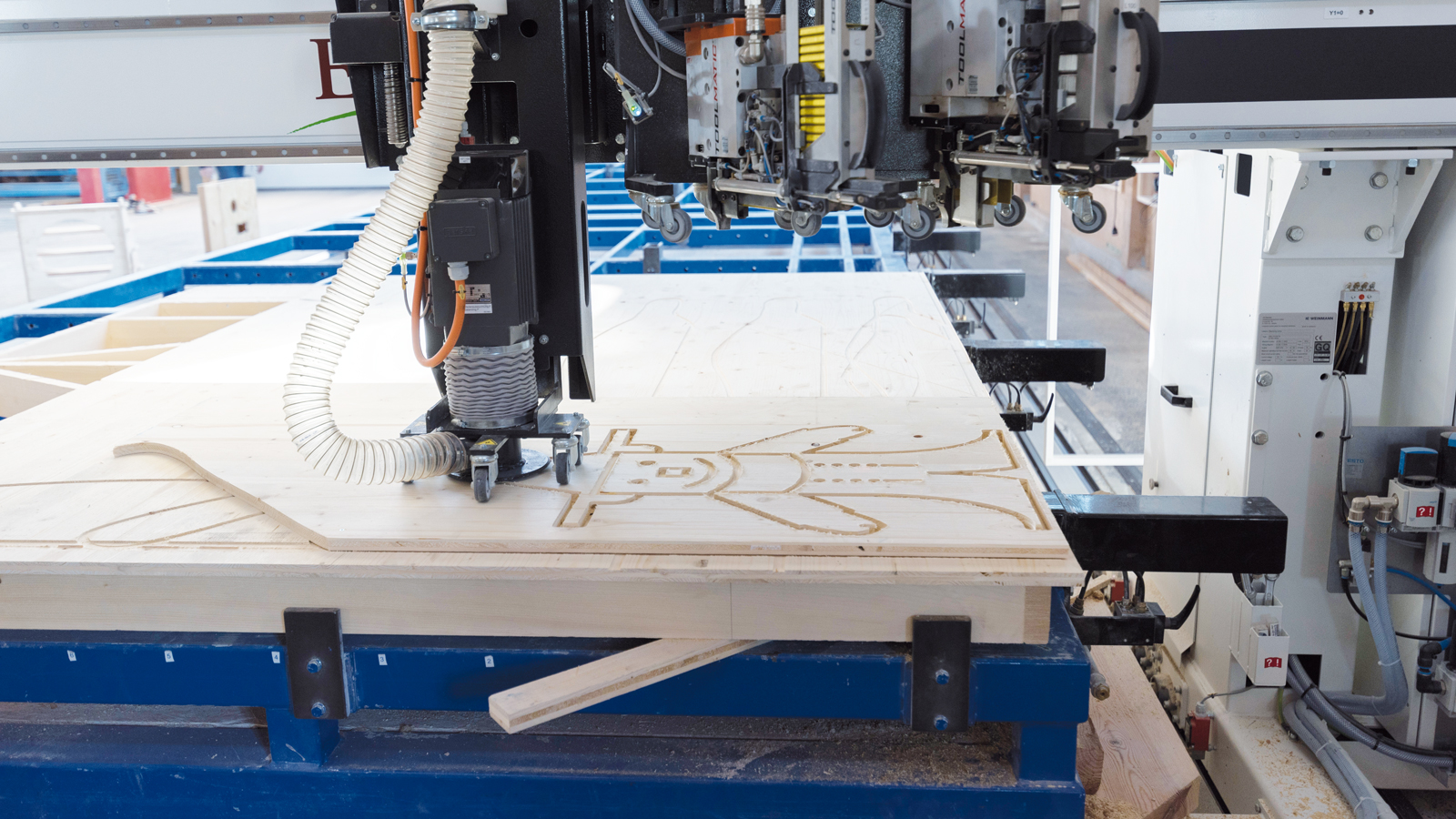 In der Zwischenzeit hat man die Zimmermeisterbrücke hin und wieder in Kleinigkeiten optimiert, etwa in puncto Absaugung für das Fräsen dicker Holzweichfaserplatten. Ausstattung und Bearbeitungsumfang decken den Bedarf in Möttigen aber bestens: "Heute erreichen wir in der Fertigung eine Geschwindigkeit, die wir mit unserer derzeitigen Stückzahl bei Weitem nicht ausschöpfen. Und zusätzlich haben wir in der Fertigung einen Mitarbeiter eingespart, den wir in der Montage einsetzen können."