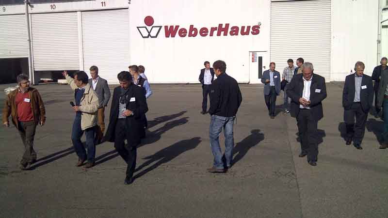 Der renommierte Fertighaushersteller hat vor 6 Jahren mit dem „Ordnung-Schaffen“ begonnen und dann die schlanke Produktion mit Workshops konsequent weiterverfolgt. Die Reduktion der Läger und Puffer in der Produktion ist hier so weit vorangetrieben, dass alle Elemente für ein Haus direkt auf den gewünschten Montagetermin hin gefertigt werden und die Materialien „just in time“ bereitgestellt werden. Bei WeberHaus ist außerdem das Qualitäts-Wesen eng gekoppelt mit der Lean- Organisation. Für Verbesserungsmaßnahmen setzt Weber Haus auf Workshops, die von den Abteilungsleitern selbst durchgeführt werden. Gestartet hat Weber Haus mit externer Unterstützung durch ein Beratungsunternehmen, und die Organisation und Workshops dann immer mehr durch eigene Mitarbeiter übernommen. WeberHaus zeigte der Reisegruppe eindrucksvoll, dass Lean auch in der Fertighausbranche absolut umsetzbar ist.