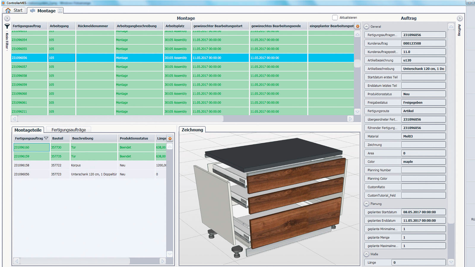 ControllerMES ist das Fertigungsleitsystem der HOMAG Group. Es ermöglicht einen durchgängigen Informationsfluss innerhalb der Fertigung und bietet gleichzeitig die Möglichkeit der hochgradig digitalisierten Produktionsplanung und -organisation. Die Daten werden dabei zunächst in einem ERP- und/oder CAD-System erzeugt, an ControllerMES übergeben und dort für alle weiteren Bearbeitungen bzw. Prozesse intelligent organisiert bzw. aufbereitet. Etiketten mit Barcodes ermöglichen dann die eindeutige Identifikation eines jedes Bauteils – vollkommen egal, wo es sich in der Produktion befindet. Darüber hinaus werden die benötigten Maschinendaten durch das Einlesen des Barcodes an der jeweiligen Maschine (z. B. Zuschnitt, Kantenbearbeitung, CNC) bereitgestellt. Durch die flexible Gruppierung von Aufträgen in der Losbildung und die nahtlose Kommunikation mit der Zuschnittoptimierung Schnitt Profi(t) wird der Verschnitt reduziert. Über den gesamten Produktionsprozess ist der Fortschritt der Aufträge im ControllerMES einsehbar. So ist auf einen Blick sichtbar, ob die einzelnen Komponenten zur Montage bereitstehen oder ausgeliefert werden können. Und sollte ein Teil schnell nach gefertigt werden müssen, unterstützt ControllerMES mit einer entsprechend vorgedachten Logik.