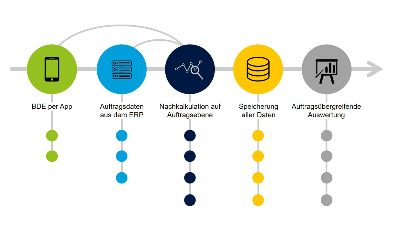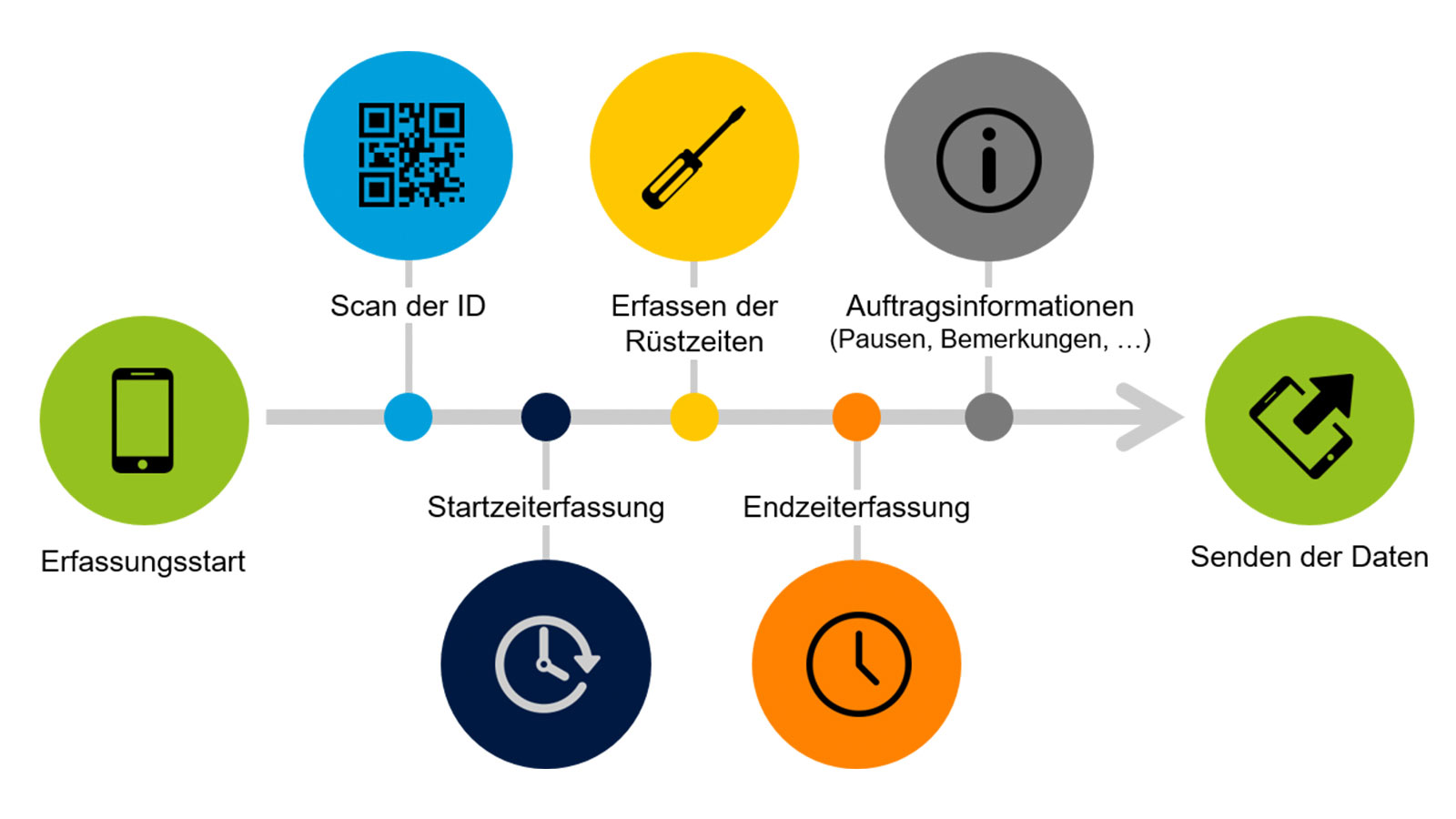 Für beinahe alles gibt es heute Apps. Die Erstellung maßgeschneiderter Apps ist kein großes Hindernis mehr und kann, insofern die flexible Anpassung gewährleistet ist, enorme Vorteile in der Erfassung produktionsspezifischer Daten bringen. Vorbei sind die Zeiten in denen man gut ausgebildete Mitarbeiter mit der Datenerfassung tagelang bindet sollte. Eine flexibel konfigurierbare App ermöglicht neue Herangehensweisen bei der Digitalisierung Ihrer Prozesse. Die Einsatzbereiche der Datenerfassung mit der App reichen von einfachen Rückmeldungen bis zu komplexen Zeiterfassungen. Anders als bei konventionellen Vorgehensweisen erlaubt diese mobile Variante, dass die Einführung zudem nicht erst bis ins kleinste Detail durchgeplant werden muss. Bereits nach einer groben Planung innerhalb weniger Minuten kann eine funktionsfähige Datenerfassung aufgebaut und getestet werden. Somit ist bereits früh sichergestellt, dass die Erfassung der notwendigen Daten funktioniert, was bei vielen Projekten zu wenig oder erst spät miteinbezogen wird. Im Anschluss kann der Aufbau der Datenverarbeitung bereits an geprüften Livedaten erfolgen. Das ist umso wertvoller, da sehr früh im Projektverlauf ein Großteil der Problemstellungen durch die Verwendung von Echtdaten zum Vorschein kommt.