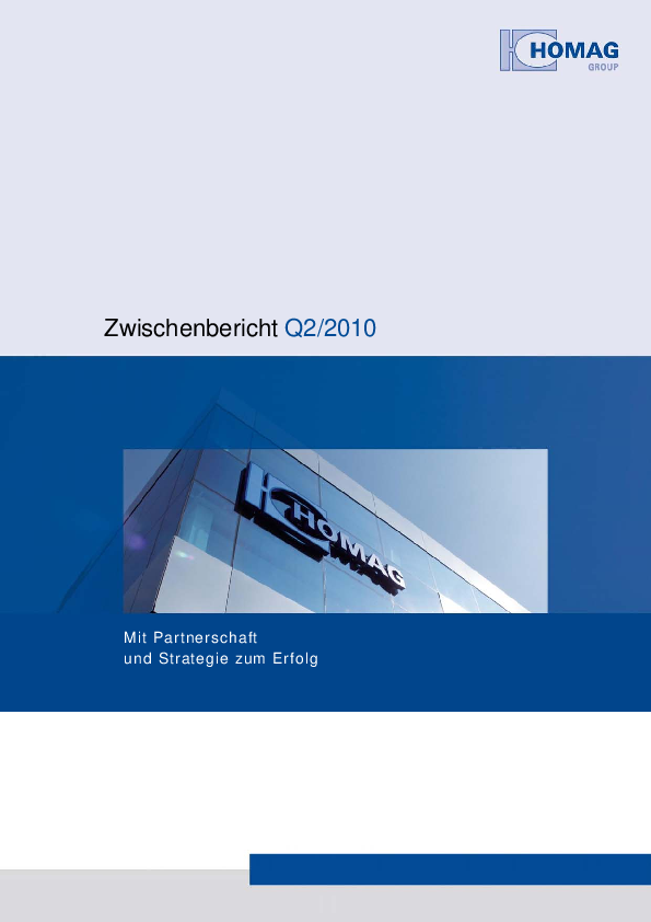 Die HOMAG Aktie notiert im Basic Board. Aufgrund der dort herrschenden Anforderungen ist eine Berichterstattung zum 1. und 3. Quartal nicht mehr notwendig.