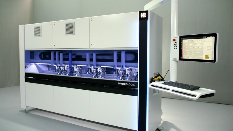Die Säge SAWTEQ B-300 / B-400 flexTec verfügt über einen integrierten Roboter und ist technisch so ausgelegt, dass sie die Losgröße-1-Fertigung über längere Strecken mannlos erledigen kann.