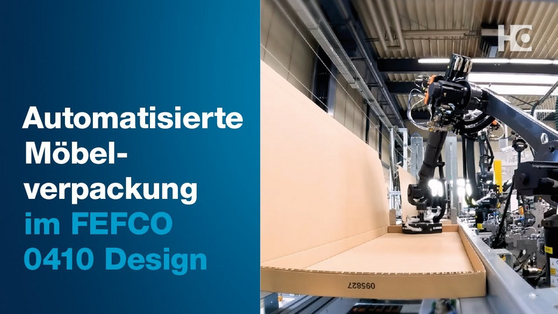 Die Linie bildet den kompletten Prozess der automatisierten Möbelverpackung vom Falten der Kartonage im FEFCO 0410 Design, über das Einlegen der Werkstücke und des Füllmaterials bis zum automatischen Verschließen, Verkleben und Abstapeln der Kartons ab.