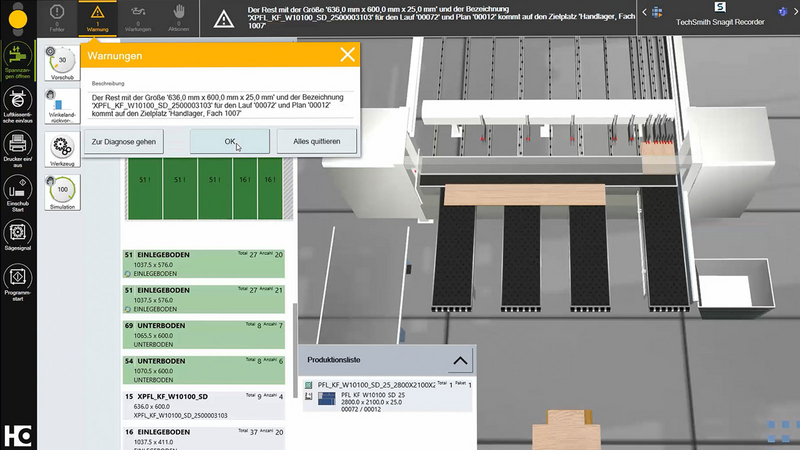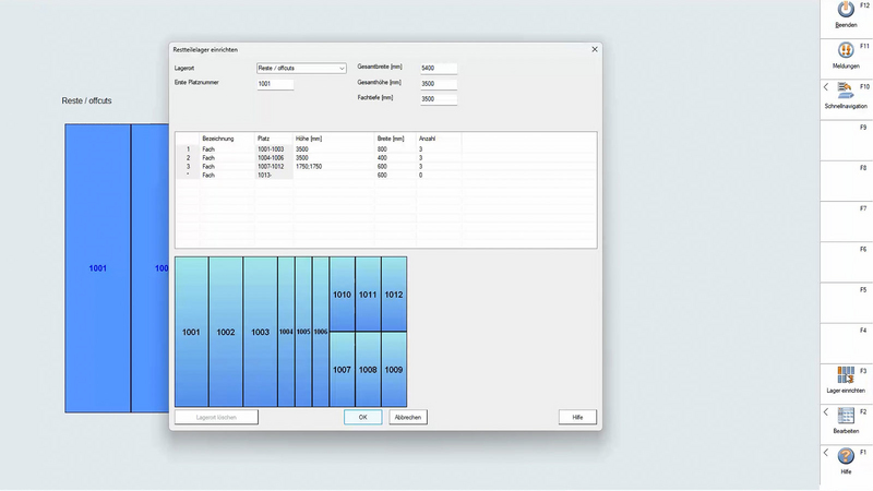 Die Handresteverwaltung unterstützt durchgängig bei der Verwaltung von manuellen Resten in einem separaten Resteregal – einfach und strukturiert direkt an der Säge.