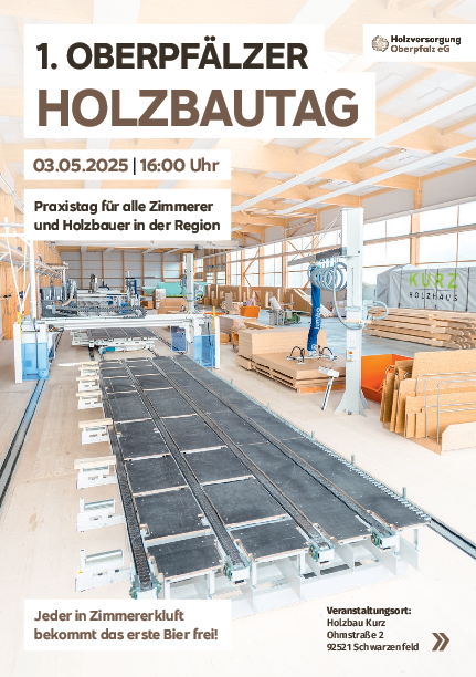 Seien Sie beim 1. Oberpfälzer Holzbautag bei Kurz Holzhaus in Schwarzenfeld mit dabei – Dem Fachtreffen für Zimmerer und Holzbauer aus der Region.