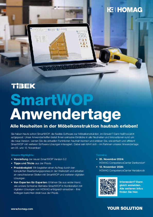 - Von Experten für Experten: Erfahren Sie aus erster Hand, wie andere Schreiner-Betriebe SmartWOP in Kombination mit digitalen Lösungen von HOMAG erfolgreich einsetzen - Ihre Kollegen berichten direkt aus der Praxis.