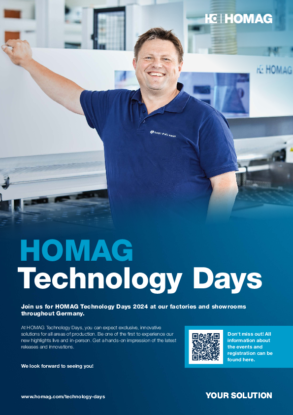 Fachvorträge in englischer Sprache sind vorab auf Anfrage (silke.laule@homag.com) und kurzfristig vor Ort an der Infotheke möglich.