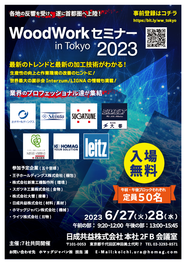 Besuchen Sie unser Woodwork Seminar in Tokio und finden Sie die perfekte Lösung für Ihre Anforderungen. Wir freuen uns auf Sie!
